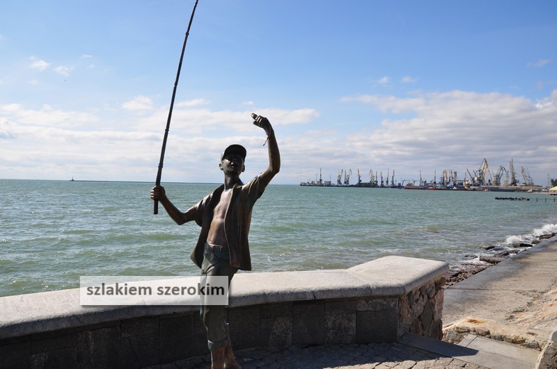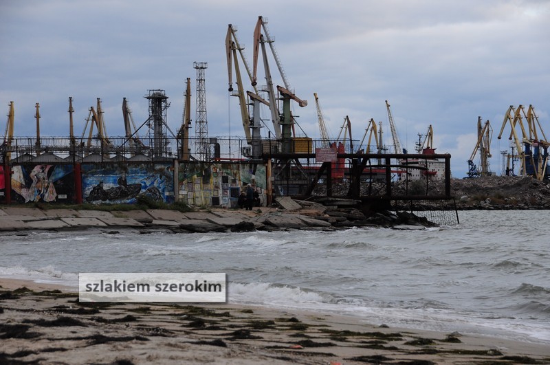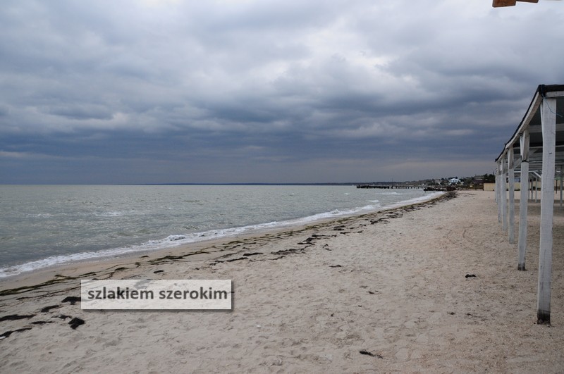 Idziemy promenadą wzdłuż brzegu. Plaża, kąpiel w morzu Azowskim zaliczona. Nie byle co, bo mamy prawie koniec września. Zwraca uwagę “Berdianska kosa”, charakterystyczny kawałek lądu wcinający się w głąb morza.