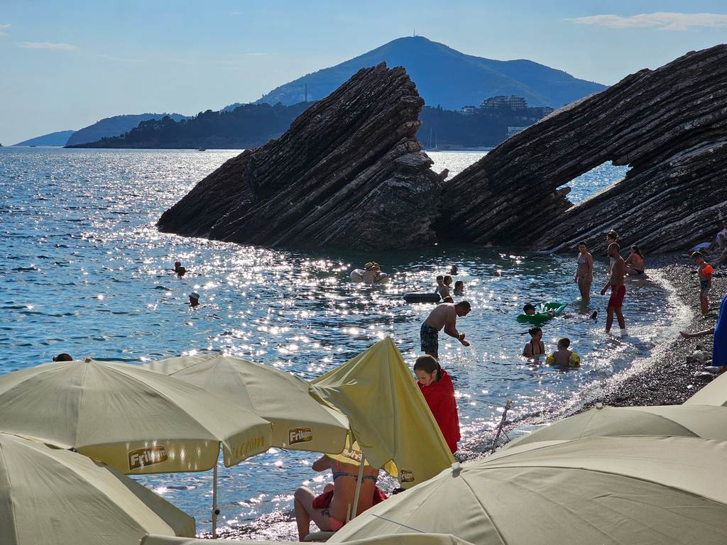 W Czarnogórze są dwa międzynarodowe lotniska: Tivat i Podgorica. My wybraliśmy Podgoricę, bo oferuje więcej lotów i lepsze dla nas czasy startów. Wylądowaliśmy po godz. 23 i już na etapie planowania wiedzieliśmy, że do Budvy o tej porze nie dojedziemy autobusem. Pozostawała zatem tylko taksówka za około 60 euro. W rzeczywistości wyszło 90, bo policzyli taryfę nocną. Na dowód, że nas nie próbują okantować, pokazali nam cennik. Ok. Uber nie działał. Alternatywą był pobyt w hotelu i strata około dwóch godzin rano na dojazd do Budvy – plus koszty hotelu. Wyszłoby zatem podobnie, więc zdecydowaliśmy się jednak na dojazd w nocy taksówką i pobudkę rano już w Budvie. Swoją drogą, jak się później – podczas powrotu okazało, lotnisko w Podgoricy to lekki skansen. Żeby się tam dostać z Podgoricy, można wziąć taksówkę albo – bardzo klimatyczny, jadący na południe pociąg. Sęk w tym, że ten pociąg jeździ co około 3 godziny. Taksówkarze chcieli 15 euro za podwózkę, ale nie przystąpiliśmy do negocjacji, bo akurat trafiliśmy na odpowiedni slot i mieliśmy pociąg za godzinę. Dworzec retro, w okolicy można kupić jedzenie, jak również piwo. Wagony pomalowane sprajem, więc trochę nas zmyliło, bo myśleliśmy, że to jakiś złom, wycofany z użytku noclegowni dla bezdomnych. Jednak o wyznaczonej godzinie ruszyliśmy. Przystanek aeroport równie klimatyczny, ot kilka kawałków betonu z namalowanym ręcznie cyrylicą napisem “aeroport”, w sumie można go pomylić z wychodkiem albo z przystankiem autobusowym z dawnych czasów, bardzo dawnych. Poza tym napis aeroport jest mylący, bo trzeba iść około 2 km do samego lotniska. To jednak szczegóły…