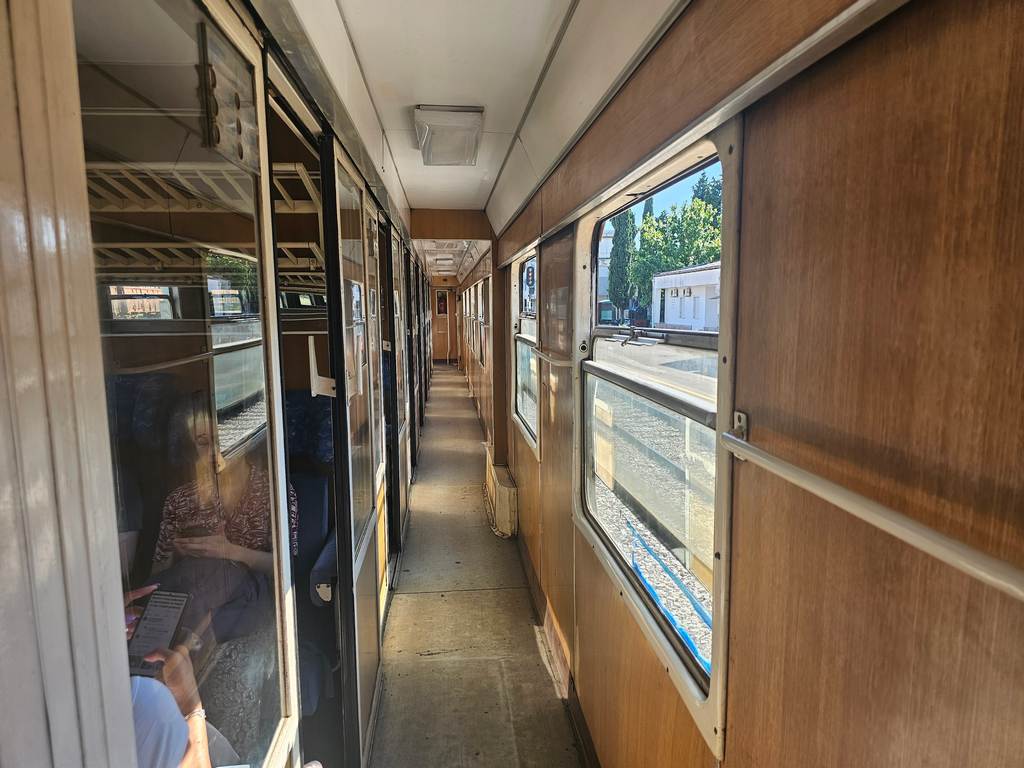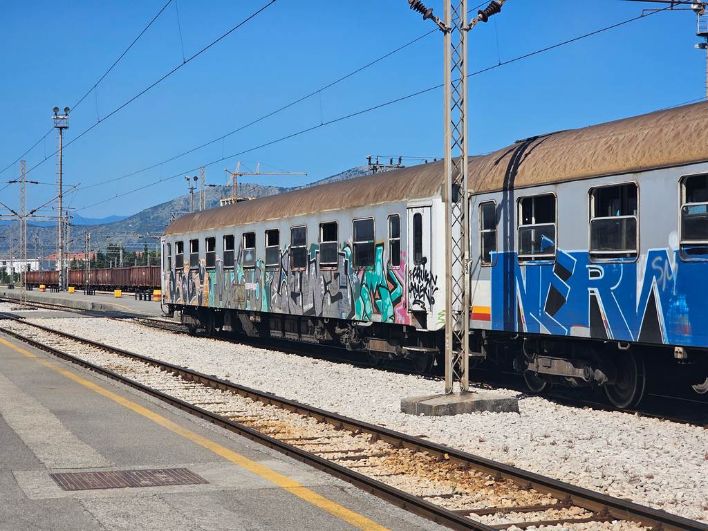 Z Budvy do Podgoricy wróciliśmy autobusem. Jak się okazało, nie ma żadnego regularnego połączenia na lotnisko – jedyną opcją jest taksówka za 15 euro. Szybko sprawdziłem, że jest tam dworzec kolejowy. Okazało się, że pociąg przejeżdżający przez stację “aeroport” jeździ co około 3 godziny. Mieliśmy szczęście, bo następny był za około godzinę. Skład, który stał na peronie w moim mniemaniu miał jechać na złom i w ogóle nie przyszło mi do głowy, żeby wsiąść do środka – no chyba żeby robić jakieś eksploracje. Jak się jednak okazało, był to pociąg, który jechał na południe – ten sam, który miał nas dowieźć na lotnisko.