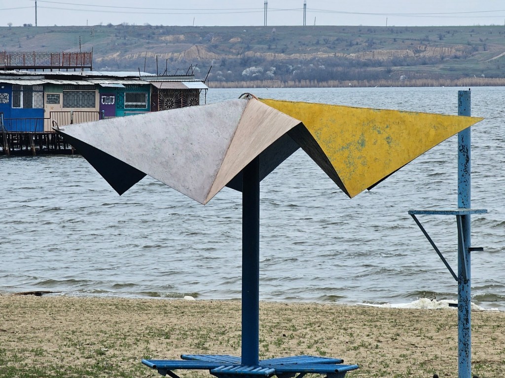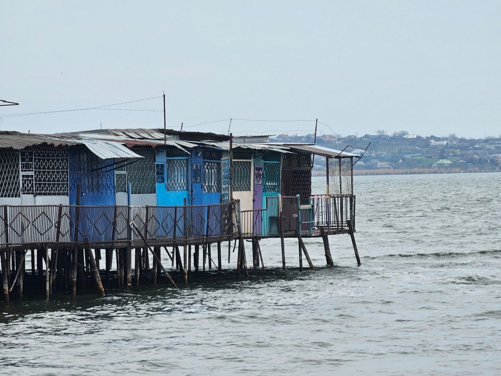 W Dniestrowsku naszym głównym celem był wyglądający na opuszczony ośrodek wypoczynkowy dla pracowników elektrowni, położony nad zalewem dniestrowskim. Podobno woda w tym zalewie, z uwagi na chemikalia, ma odcień turkusowy, jednak ciężko było to stwierdzić. Uwagę zwracają setki, a może i tysiące metalowych pali podtrzymujących prowizoryczne podesty z blachy, na których stoją setki zaimprowizowanych, plastikowych domków. Większość zamknięta na kłódki, ale widać instalacje elektryczne, anteny telewizyjne, a nawet doprowadzoną wodę. Pewnie można je wynająć w sezonie, ale pod koniec marca wszystko wyglądało na wymarłe i przygnębiające.